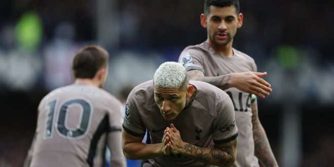 سجّل ريتشارليسون، لاعب توتنهام هوتسبير، هدفاً في مرمى إيفرتون، خلال مباراة الفريقين، السبت، وضمن منافسات الجولة الـ 23 في الدوري الإنجليزي الممتاز (البريميرليغ).