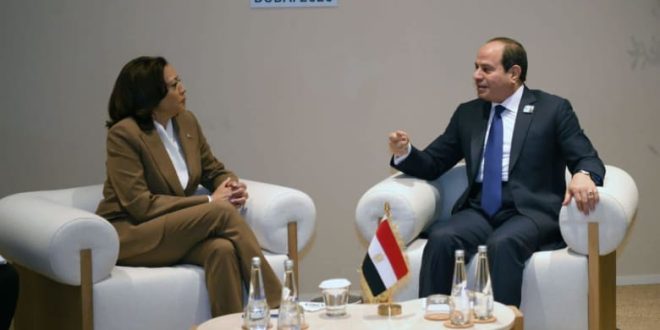 ومن جانبه، قال المتحدث الرسمي باسم رئاسة الجمهورية المصرية، المستشار أحمد فهمي، في بيان عبر صفحة الرئاسة على فيسبوك، إن الاجتماع بين السيسي وهاريس جاء على هامش أعمال الدورة الـ٢٨ لمؤتمر أطراف اتفاقية الأمم المُتحدة الإطارية لتغير المناخ في دبي “COP28”.