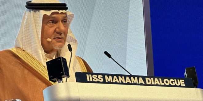 وقال الفيصل، في كلمة خلال مشاركته في “حوار المنامة” الذي تستضيفه العاصمة البحرينية، إنه “منذ خلق دولة إسر-ائيل عام 1948، كلما اندلعت أزمة أو ح-رب في منطقتنا، يتصاعد الحديث عن الحاجة إلى حل لمعالجة جذور الصراع، ورغم ذلك الجميع يتحدث لكن لا يسيرون في الطريق حتى نهايته”.