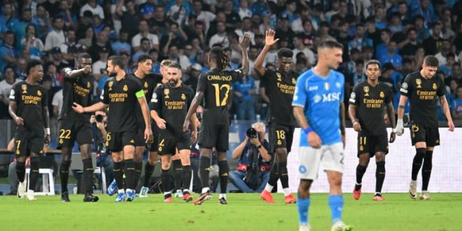 وجاءت ثلاثية فريق “الميرنغي” عن طريق فينيسيوس جونيور وجود بيلينغهام وهدف عكسي، فيما أحرز ليو سكيري وزيلينسكي هدفي نادي نابولي.