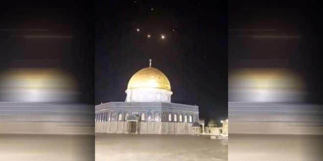نشرت صفحة إسرائيل بالعربية التابعة لوزارة الخارجية الإسرائيلية مقطع فيديو يظهر جزءا من الهجوم الإيراني بالصواريخ والطائرات المسيرة فوق المسجد الأقصى وقبة الصخرة في القدس.