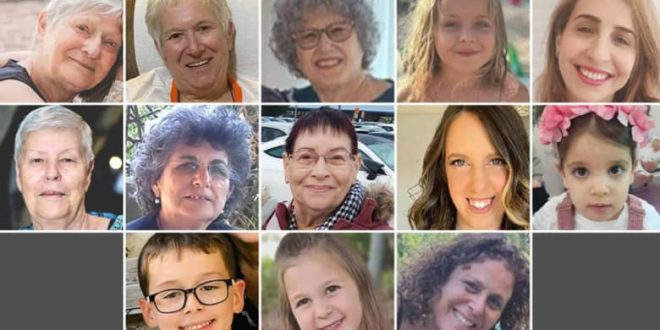 – أدينا موشيه، 72 عاما: معلمة متقاعدة ومقيمة في نير عوز هي أم لأربعة أطفال وجدة لـ 12 طفلا. قُتل زوجها ديفيد (سعيد) موشيه في منزلهما في 7 تشرين الأول/ أكتوبر.
