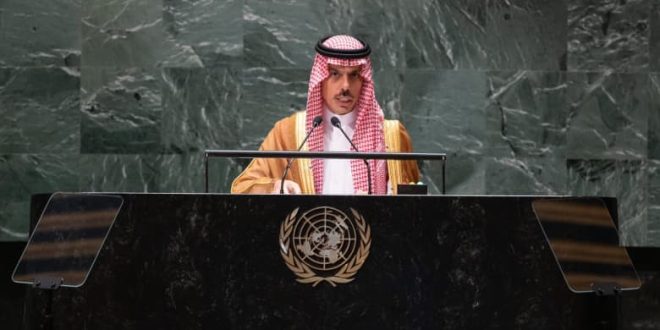 وجدد وزير الخارجية السعودي في كلمة المملكة، أمام الاجتماعات السنوية بالجمعية العامة للأمم المتحدة في نيويورك، مساء السبت، “تأكيد المملكة على أن أمن منطقة الشرق الأوسط يتطلب الإسراع في إيجاد حل عادل وشامل للقضية الفلسطينية، يُبنى على أساس قرارات الشرعية الدولية ومبادرة السلام العربية، بما يكفل حق الشعب الفلسطيني في إقامة دولته المستقلة على حدود عام 1967 وعاصمتها القدس الشرقية”.