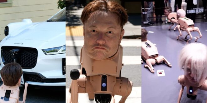 شوهد كلب آلي على شكل رأس إيلون ماسك يتجول في شوارع سان فرانسيسكو، ويلتقي ببعض …